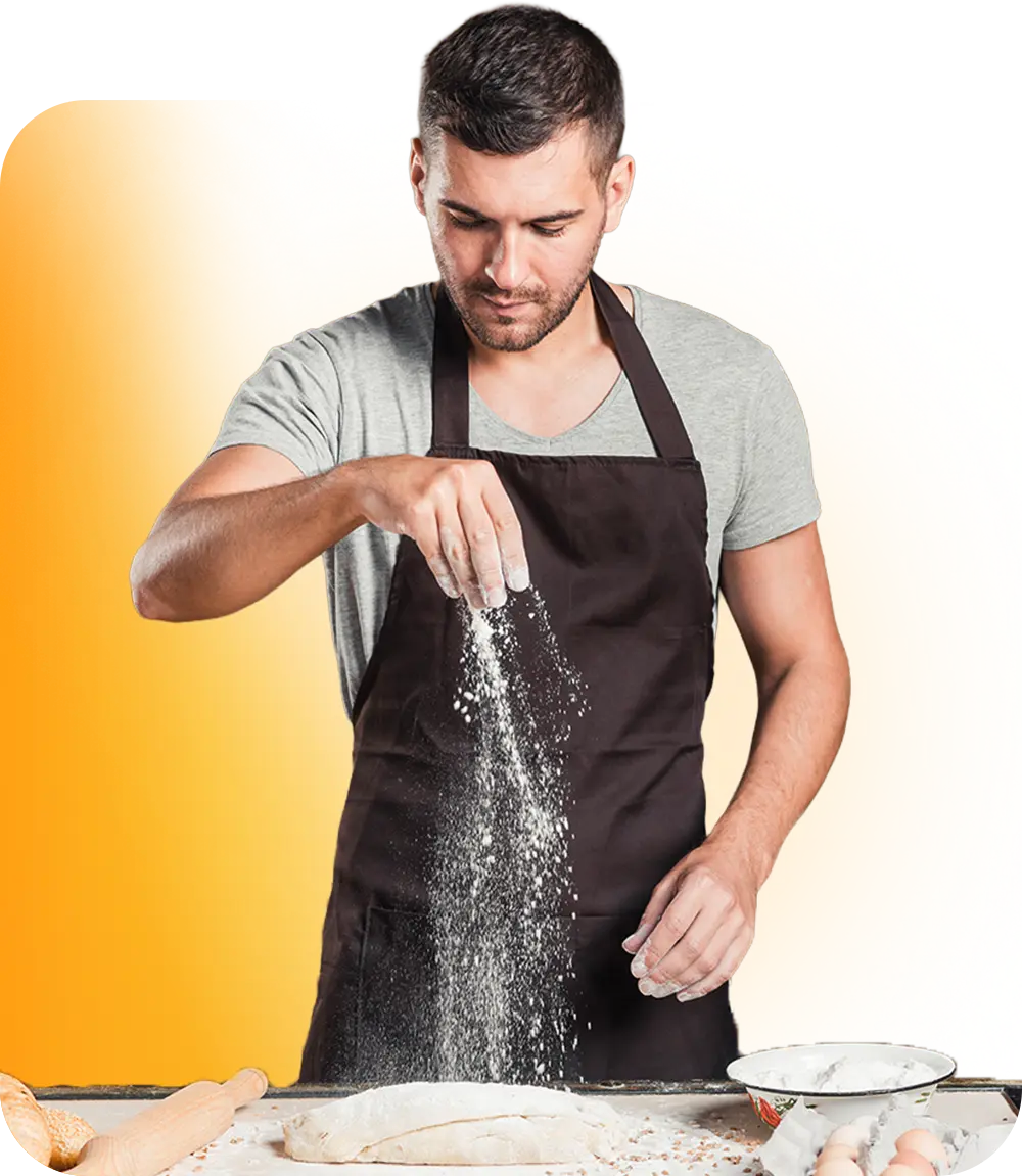 Ajuste de forno, controle de tempo, acabamento dos produtos e execução de receitas completas do início ao fim.